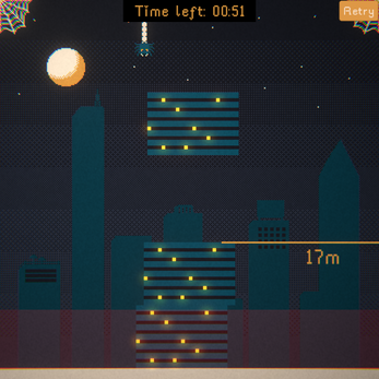 How large a tower can one teeny spider make? Come try it out, shoot your web, stack them blocks, and build the highest tower the spiders have ever seen in Tiny Tarantula Tower.